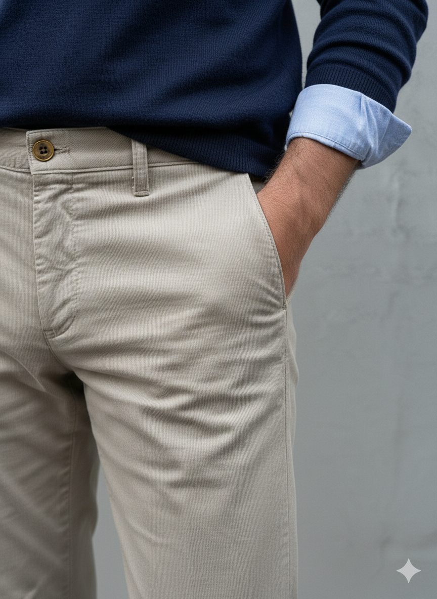 Modello Stryt | Cotone rigatino elasticizzato | Col. Sabbia